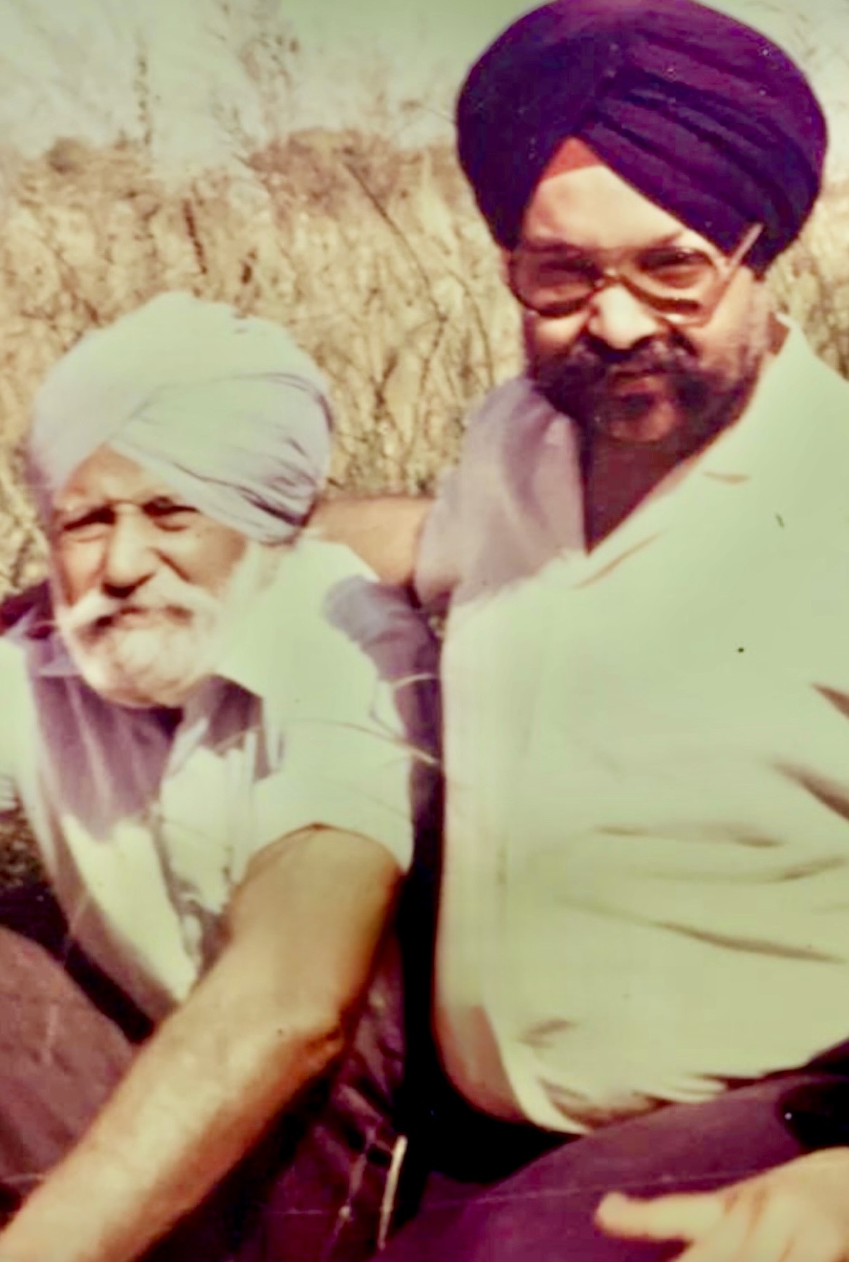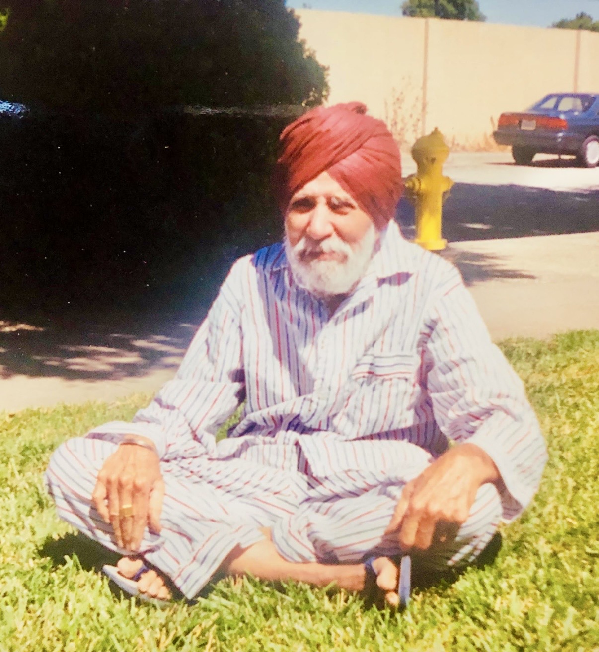 My Dad S Vasdev Singh, with his favorite color of turban, sun-bathing in the front yard of our first rented dream apartment in San Jose Ca