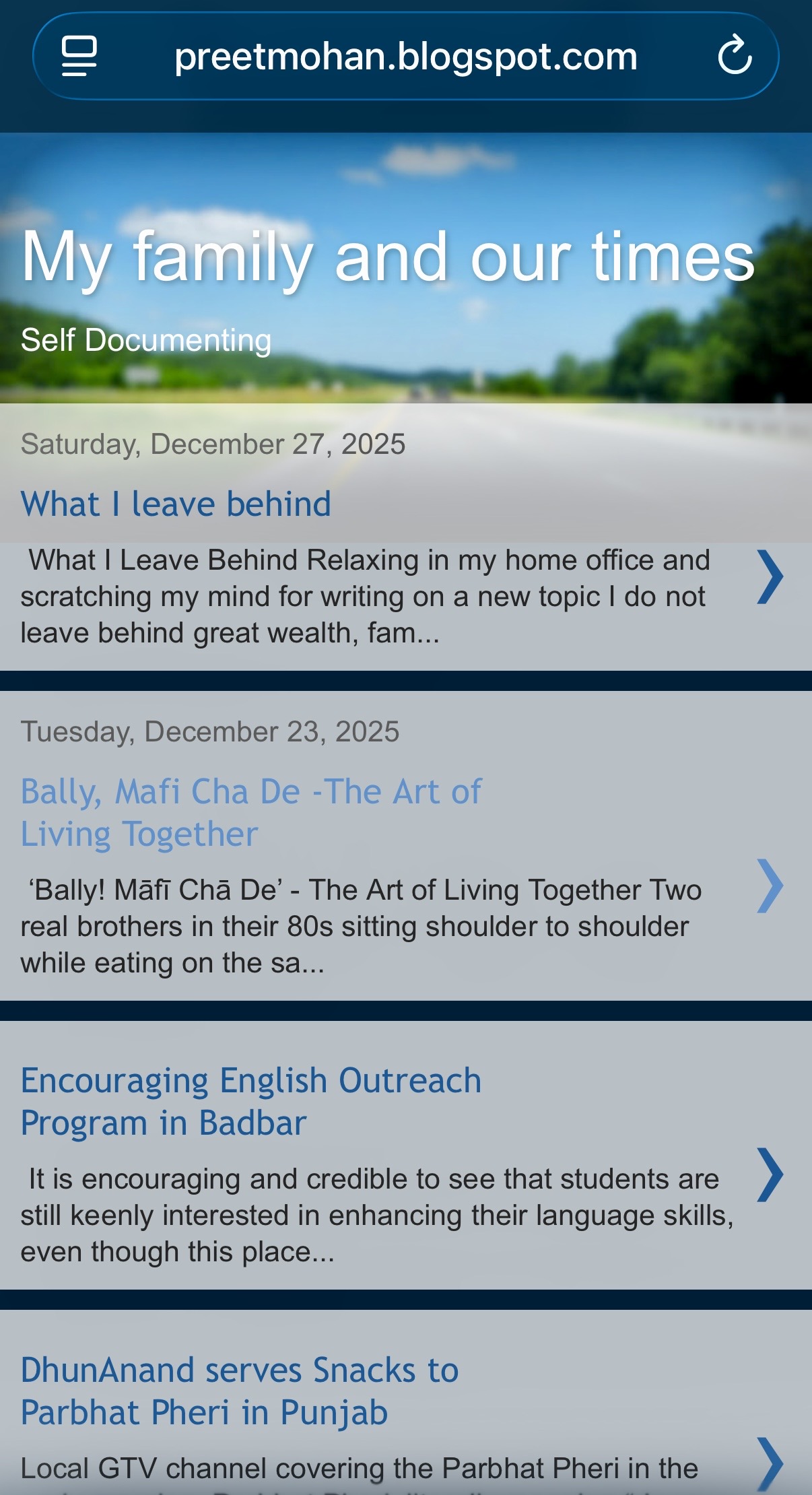 I leave behind my son Shivpreet, a scholarly and deeply reflective mind whose intellectual depth and pursuit of knowledge give me confidence that learning and wisdom will continue to flourish in our family on the footsteps of Bhai Nand Lal Goya, a loureute poet in the court of Sri Guru Gobind Singh. Beside him stands my daughter-in-law, Shilpy, from a proud Army background, who truly stands like a rock. Her strength, discipline, and steadfastness have completed our family circle. Together, they nurture and guide our three grandchildren, Gobind, Jania, and Geet who represent continuity, hope, and the future unfolding before us.