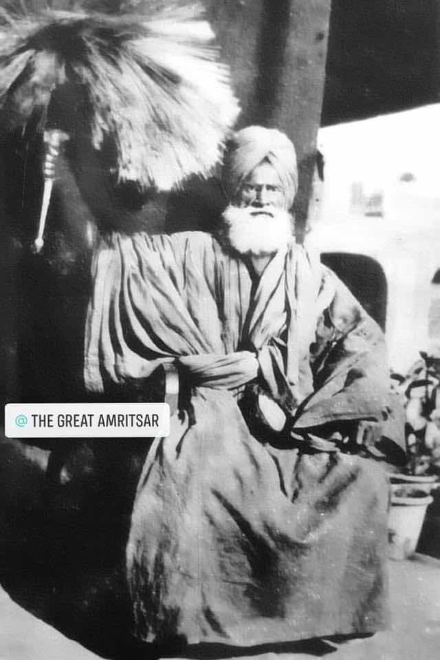 Pic 1- Haji maskin holding the Sandalwood fly whisk( chandan di chaur sahib)