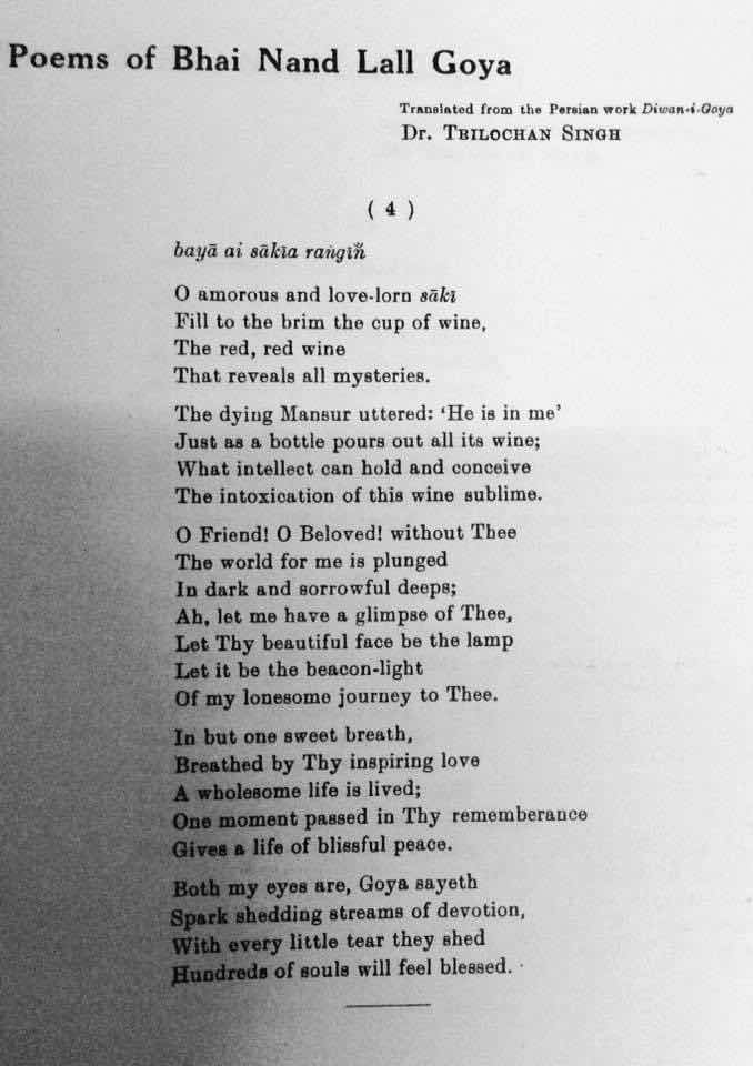 Bhai Nand Lal poems translated by Dr Tarlochan Singh