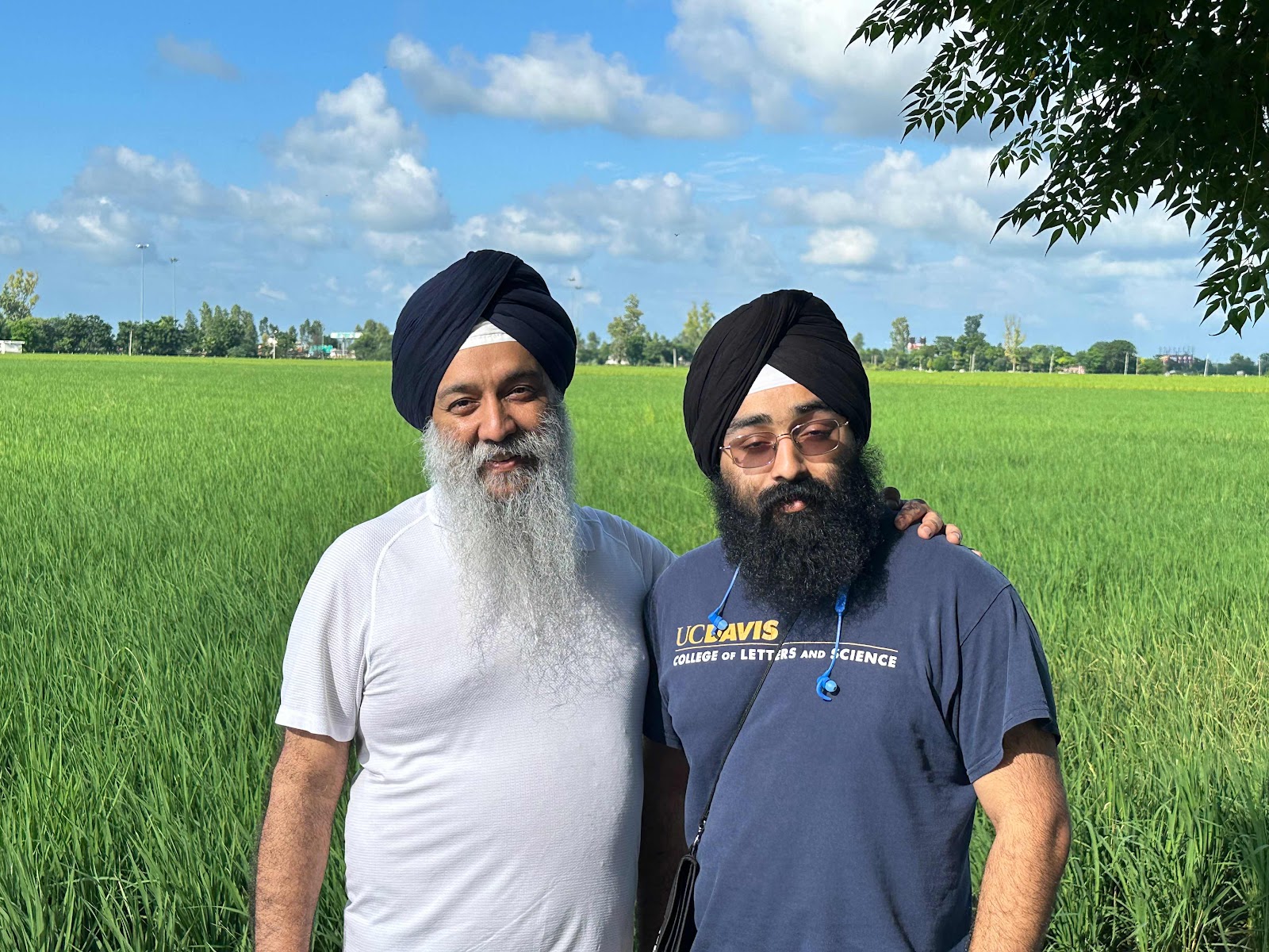 Sardar Shivpreet and Sardar Gobind against lush green Paddy back drop on the Nehri patch.