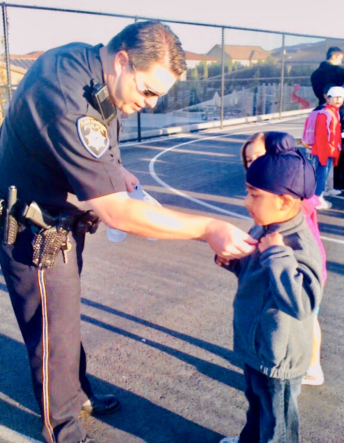 on walk to School, Gobind gets a motivational Police Batch from San Ramon Police Department.
