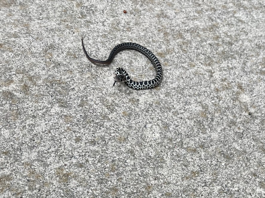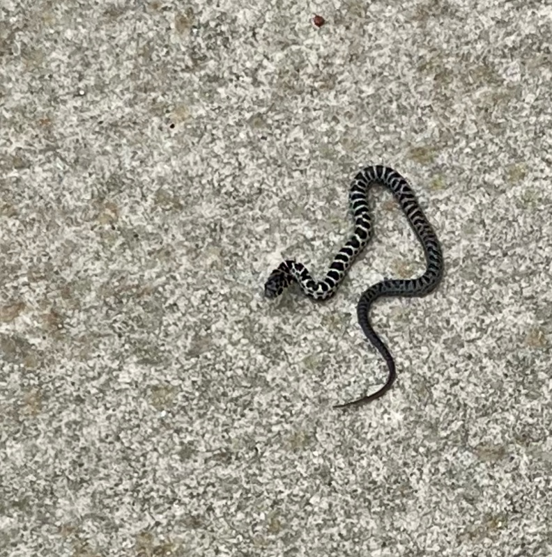 Later, I realized it was a corn snake. I knew that because I had researched them before and read about them in books. It looked like the typical kind of snake most people imagine — the second one you’d think of after a cobra. Also, corn snakes are common in the area where we live, and fortunately, they’re not poisonous